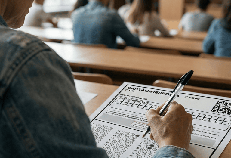 O EducaScan utiliza Inteligência Artificial e a Teoria de Resposta ao Item (TRI) do ENEM para corrigir gabaritos instantaneamente e gerar relatórios de desempenho precisos para toda a escola.